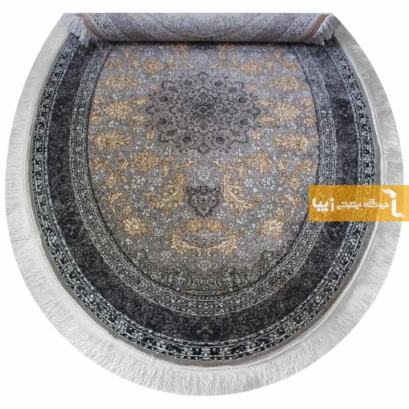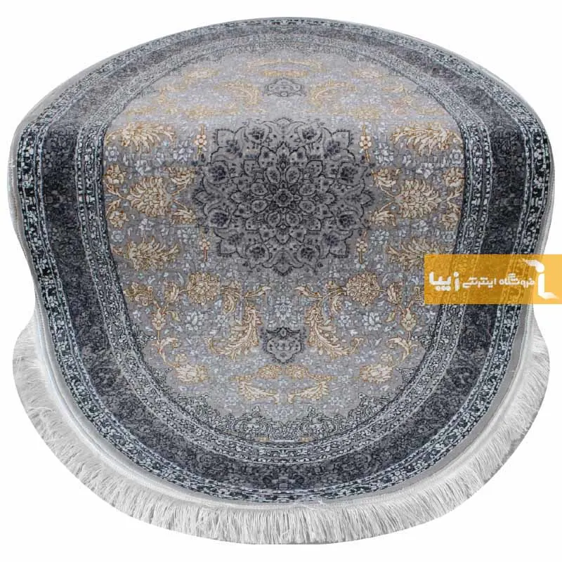 فرش بیضی طرح نقره ای شاهسوند 700 شانه