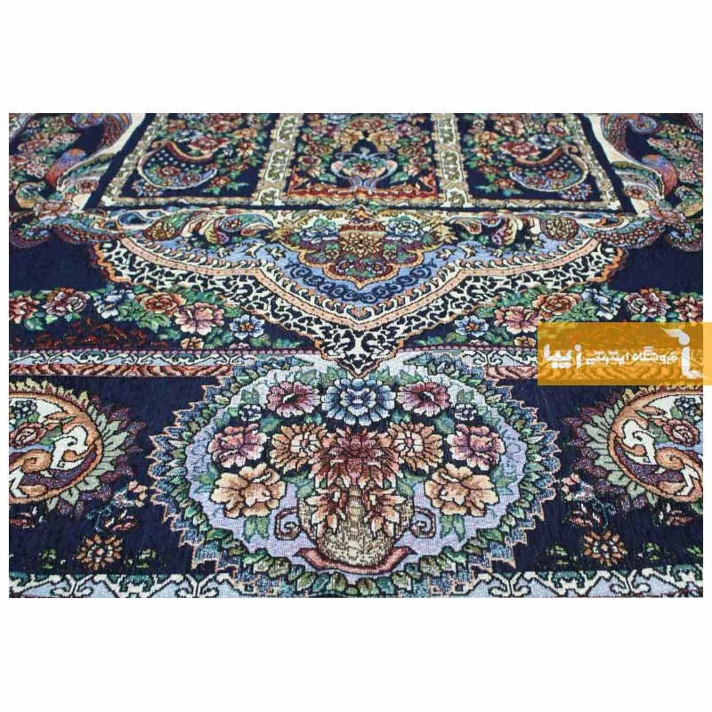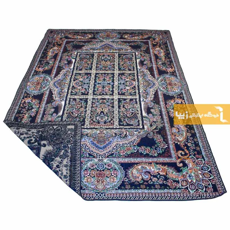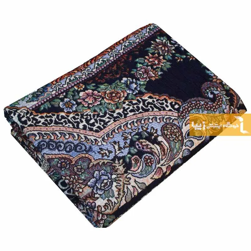 روفرشی مخمل طرح خشتی زمینه سرمه ای
