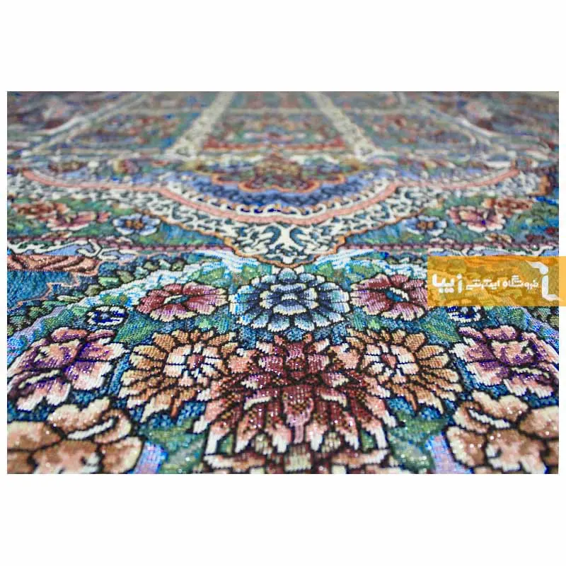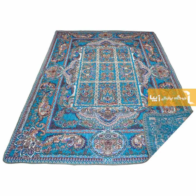 طرح خشتی زمینه فیروزه ای برگرفته از طرح و نقش فرش دستباف ایرانی است. این روفرشی علاوه بر محافظت از فرشهای شما، جلوهی بسیار زیبایی به خانهتان خواهد بخشید.جنس مخمل آن به دلیل وزن ، ضخامت مناسب و خاصیت ضد الکتریسیته ساکن بدون چروک و یا بهم ریختگی به راحتی بر روی فرش قرار می گیرد.