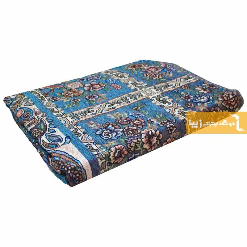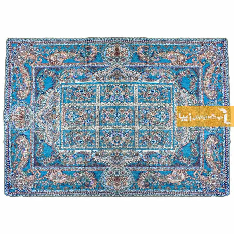 روفرشی مخمل طرح خشتی زمینه فیروزه ای