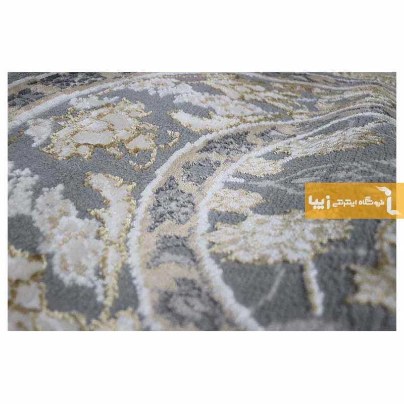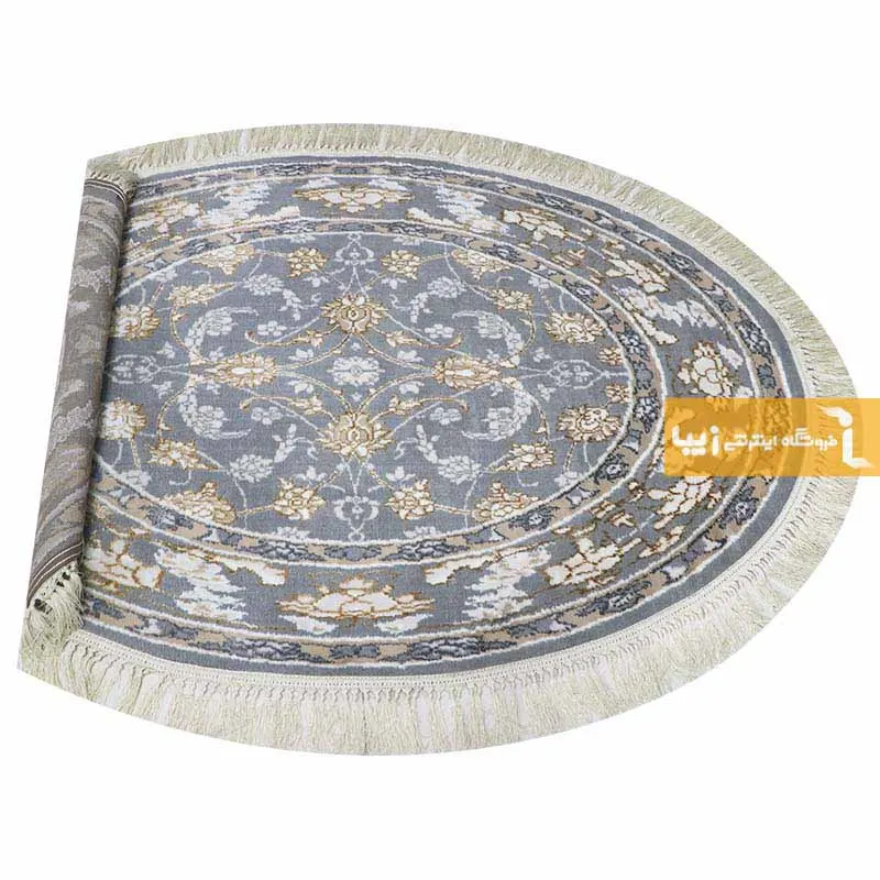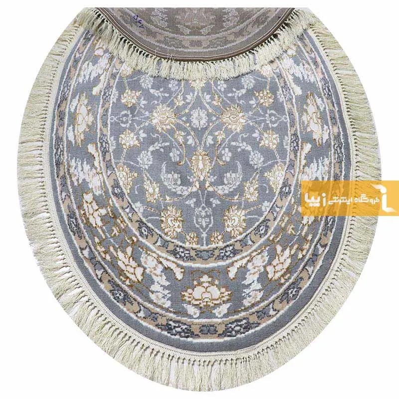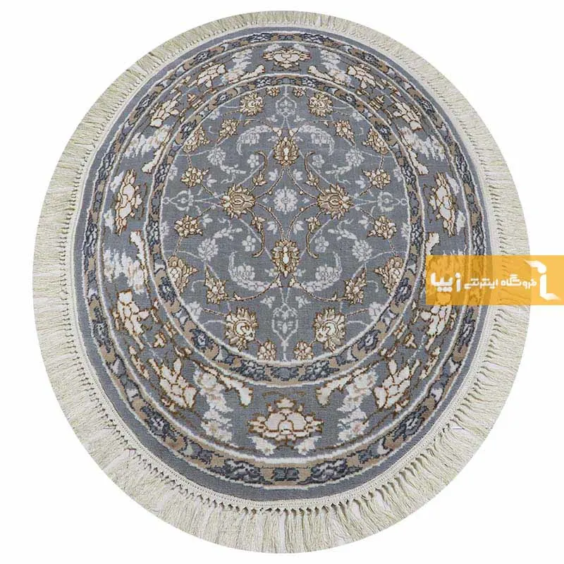 فرش بیضی طوسی طرح زنبق 440 شانه