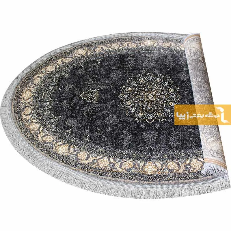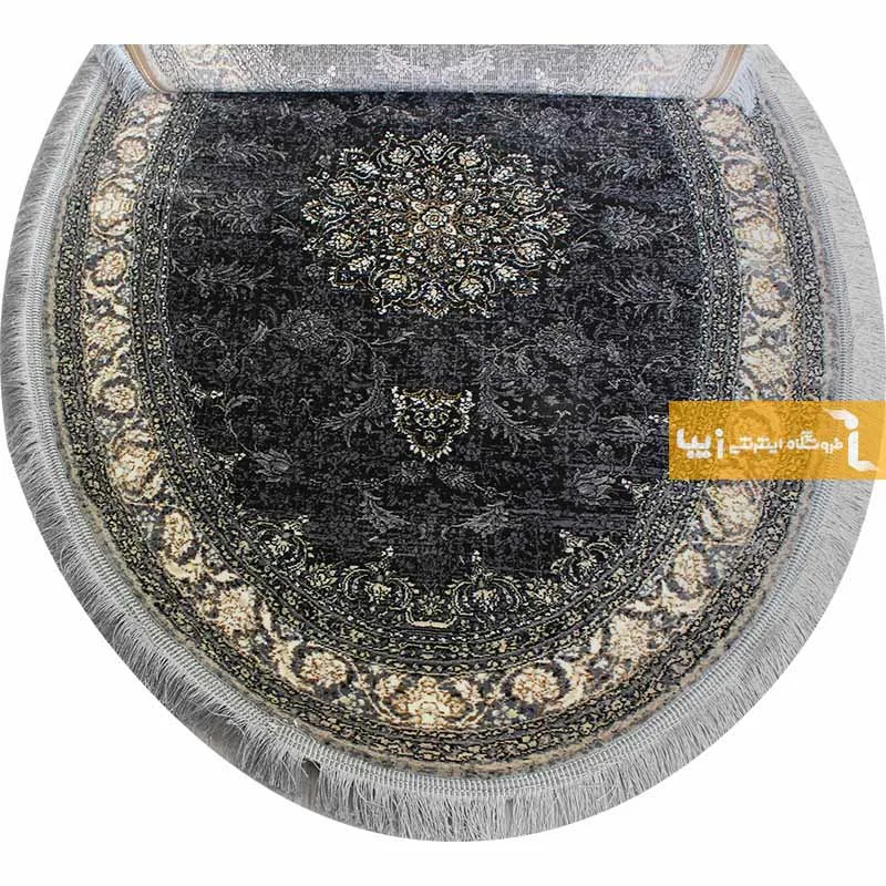 فرش بیضی ذغالی طرح شاهسوند 700 شانه