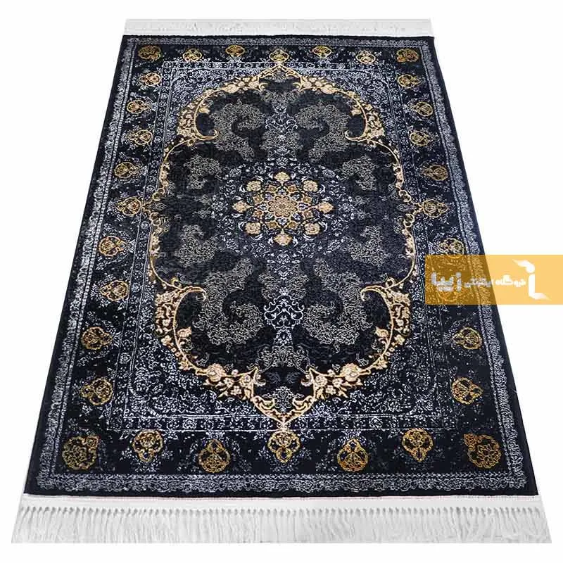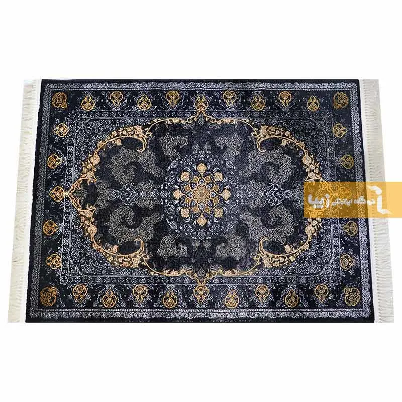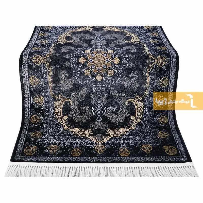 فرش سرمه ای طرح باغ بهشت 700 شانه