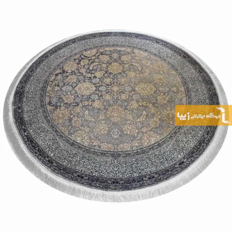 فرش گرد ذغالی طرح شاهگل 700 شانه