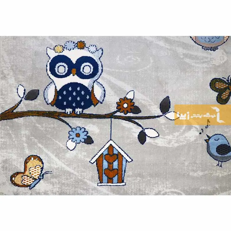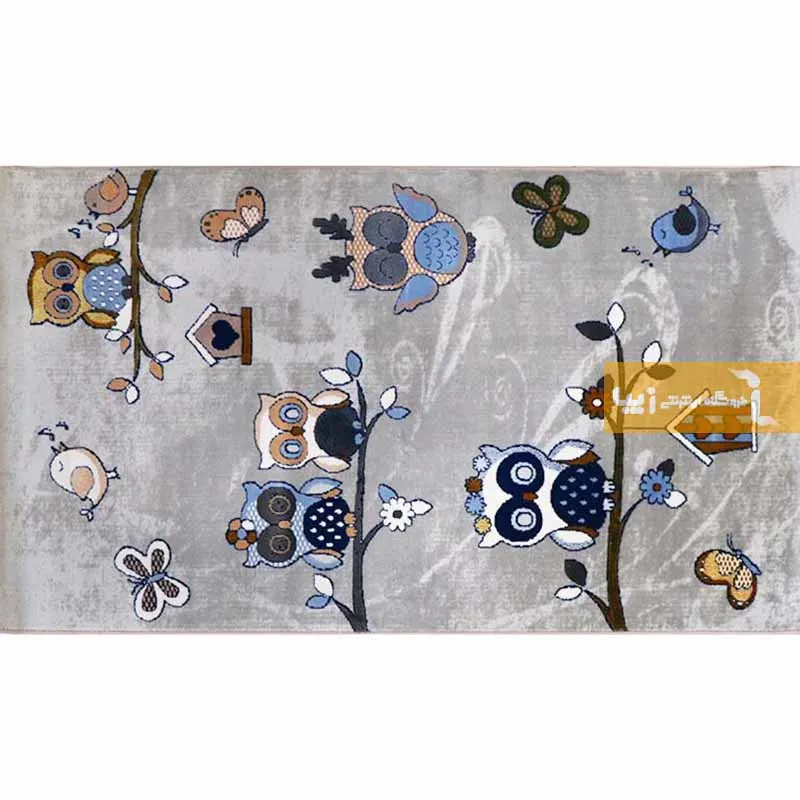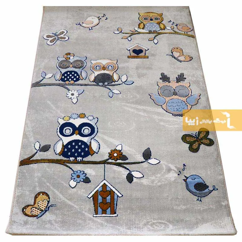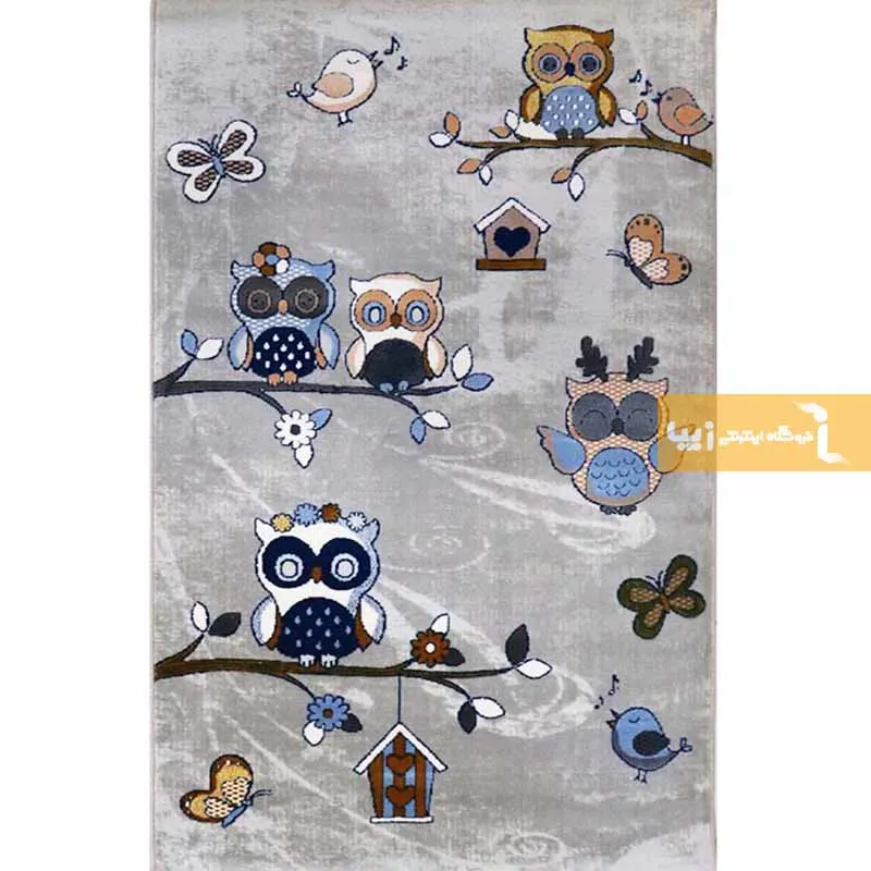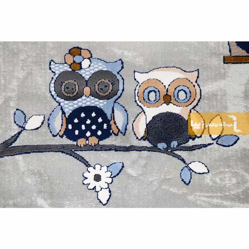 فرش کودک طوسی طرح خانواده جغدها 440 شانه