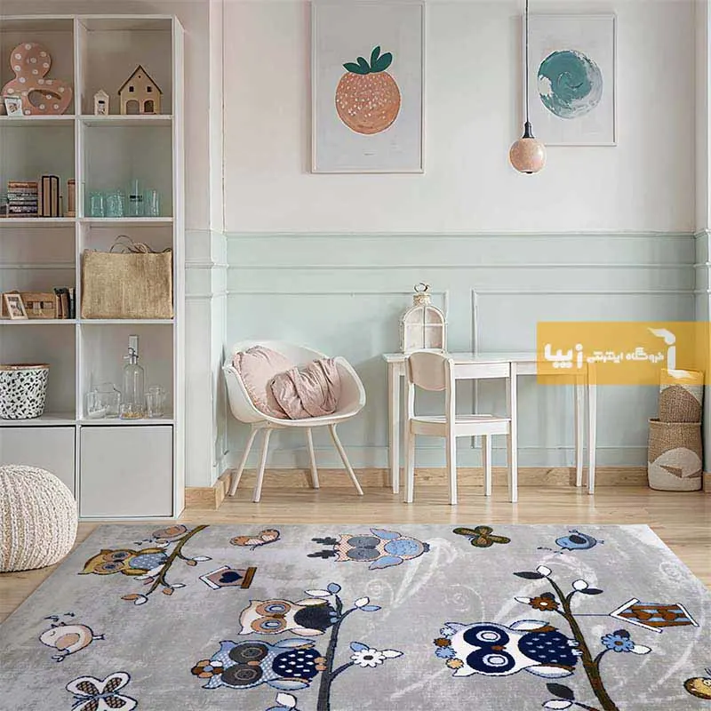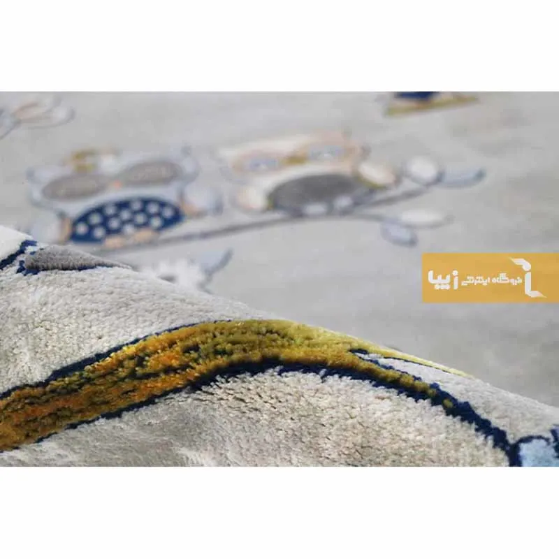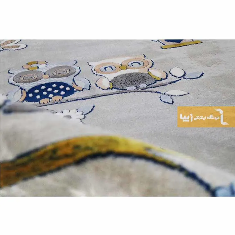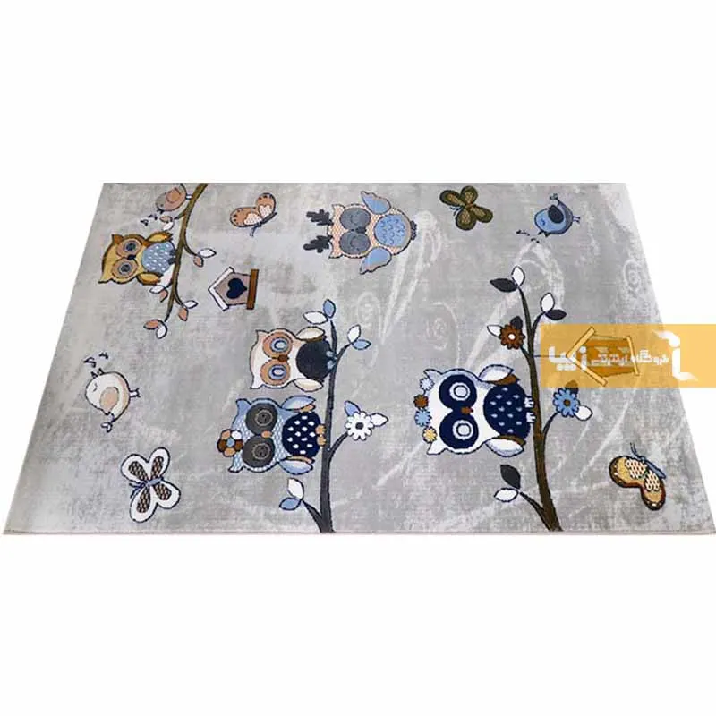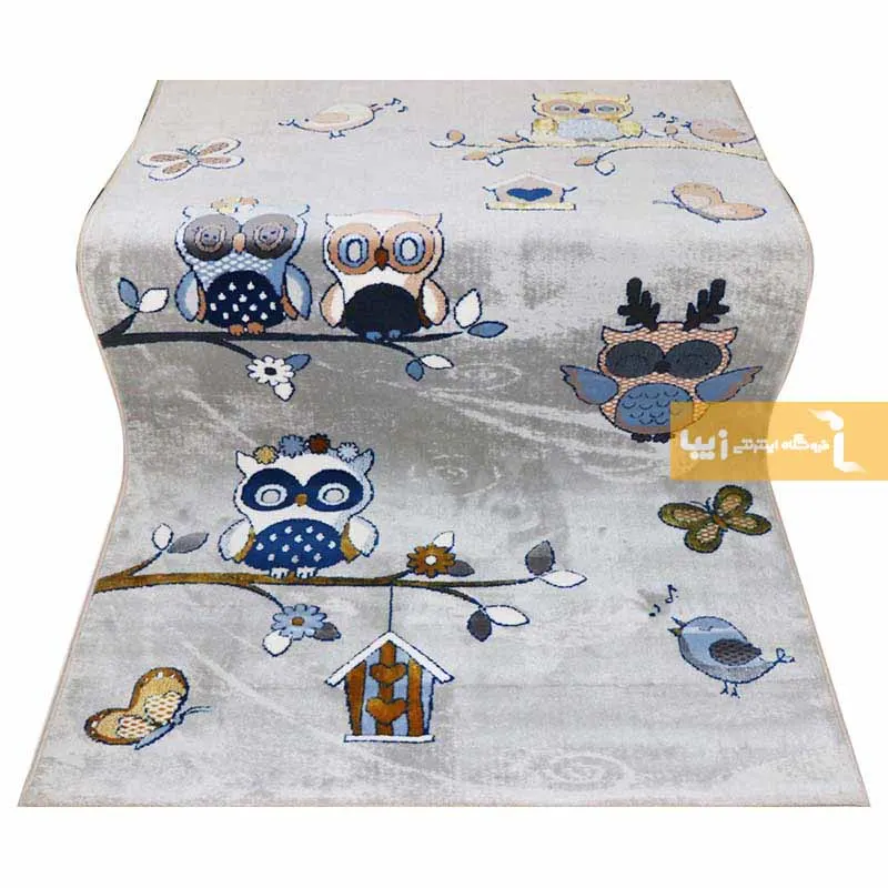 فرش کودک طوسی طرح خانواده جغدها 440 شانه