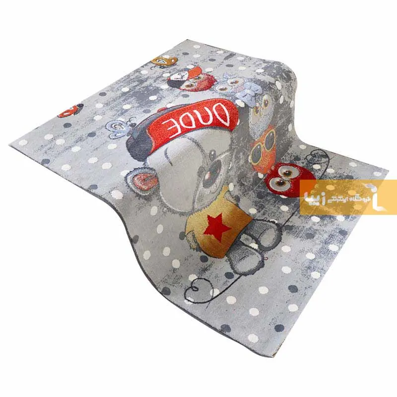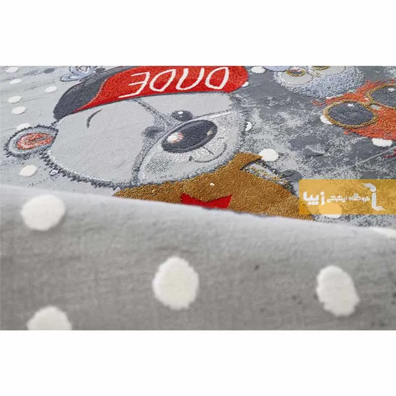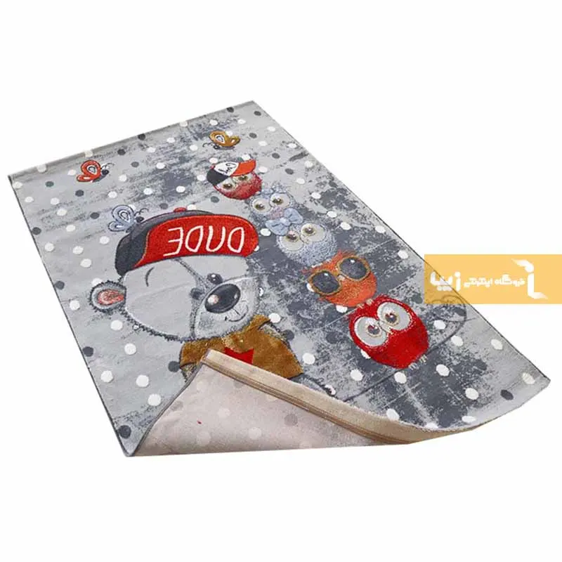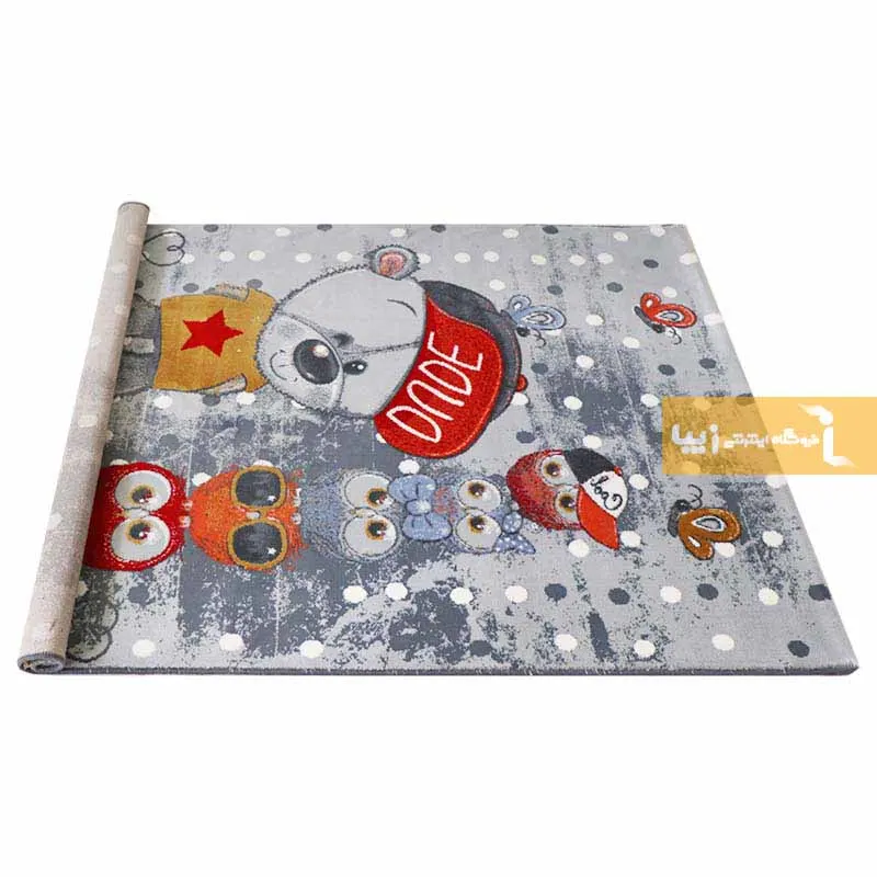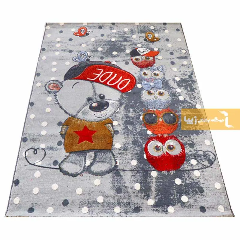 فرش کودک طوسی طرح خرسی و جغدها 440 شانه