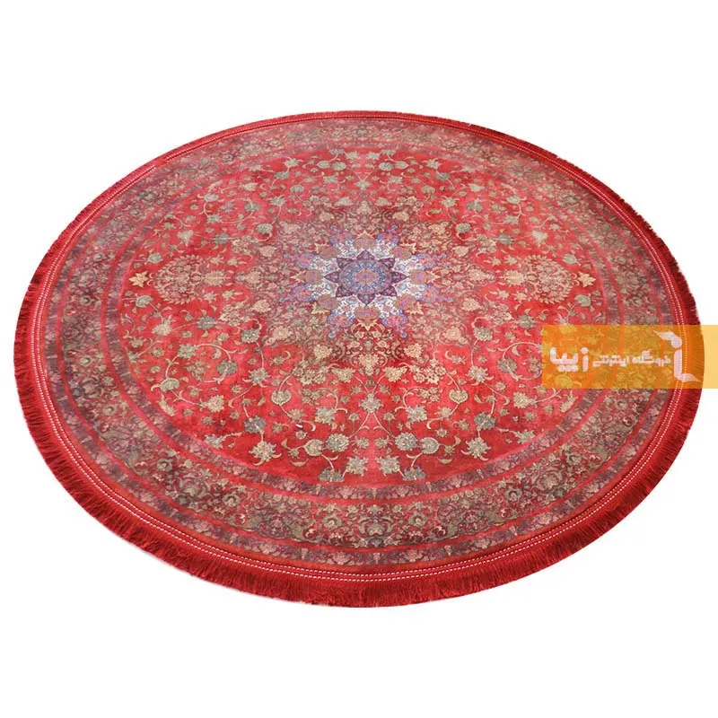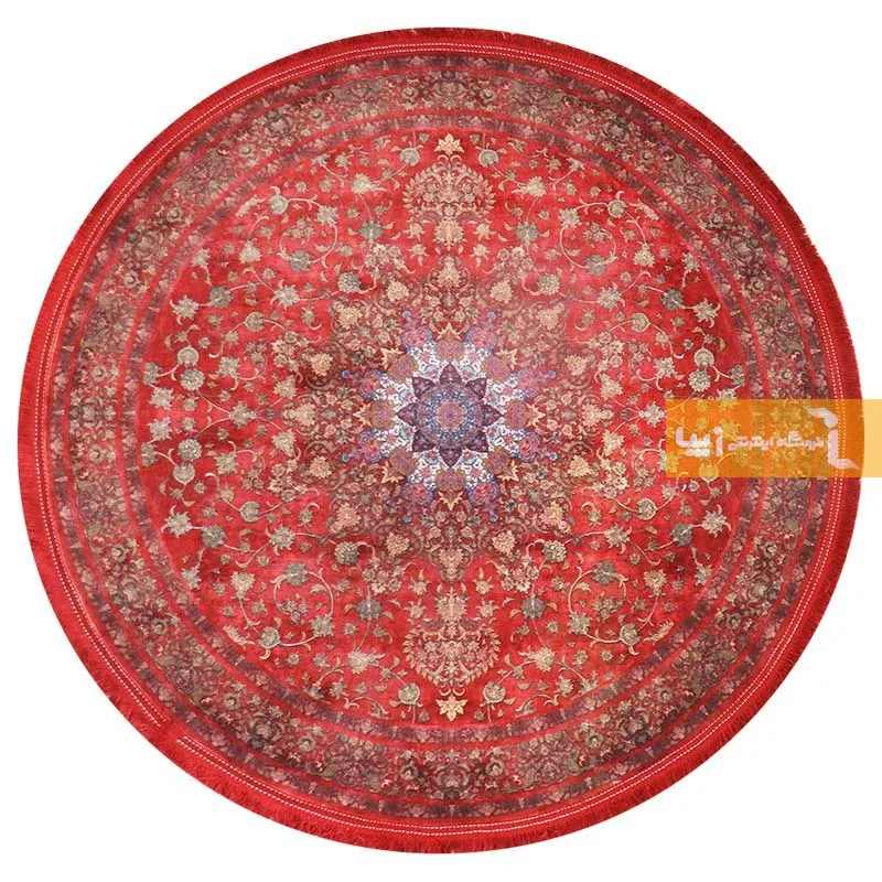 فرش گرد قرمز طرح مرجان 1200 شانه