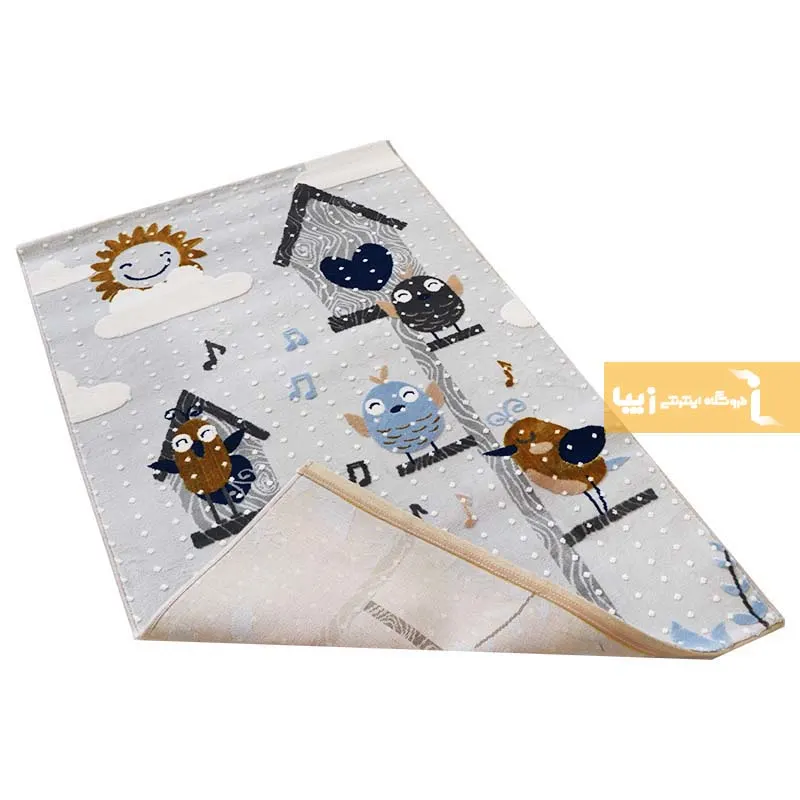 فرش کودک طوسی طرح پرنده 440 شانه