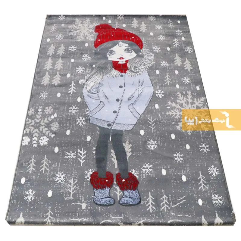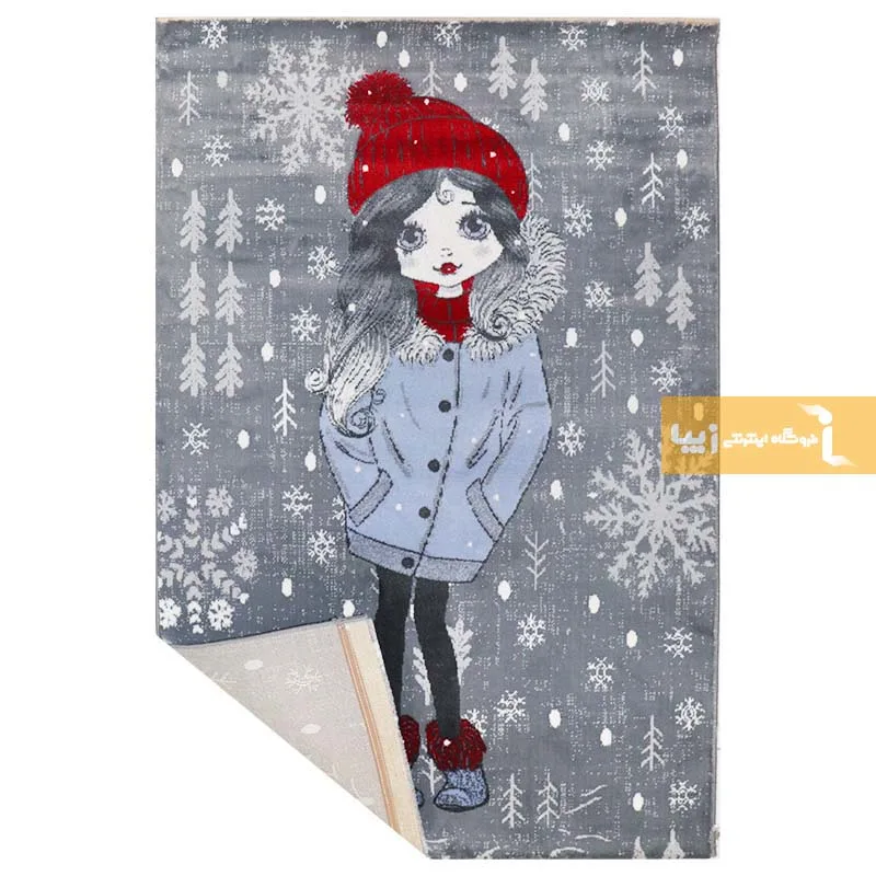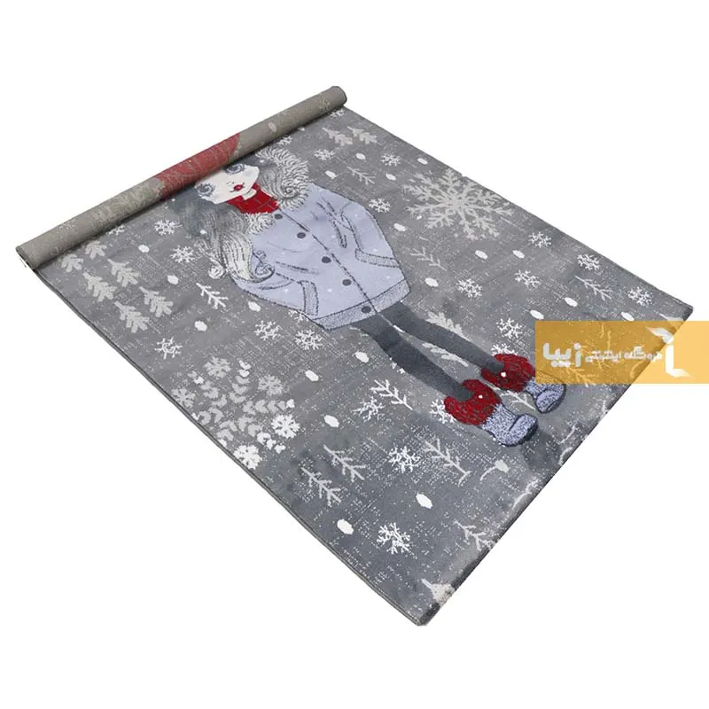 فرش کودک طوسی طرح روز برفی 440 شانه